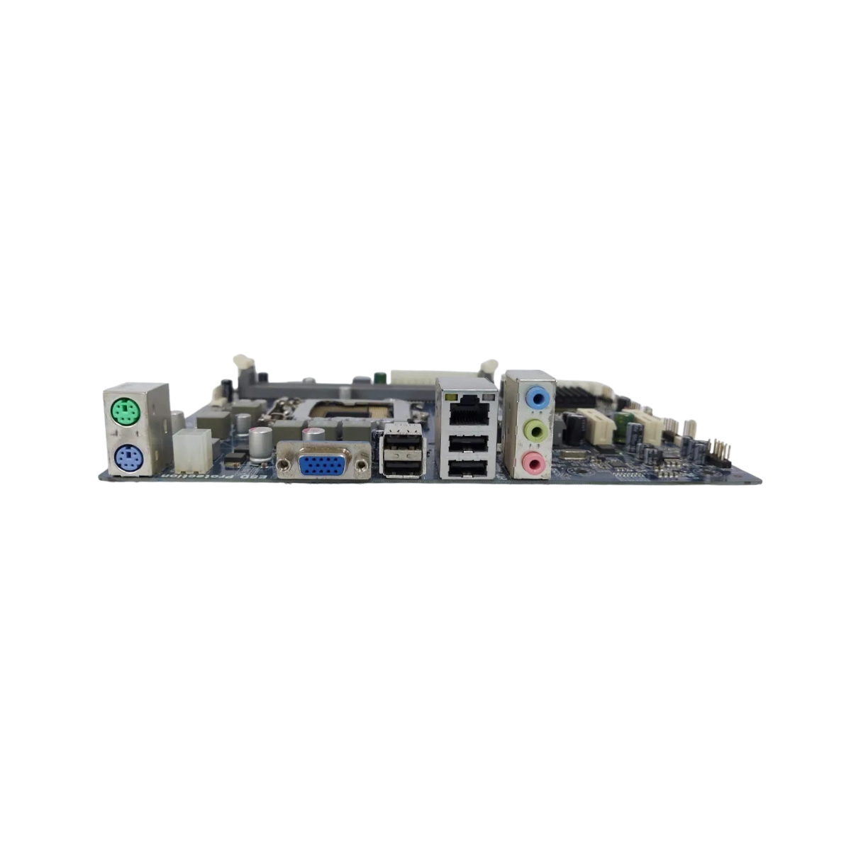 Conectores traseiros: PS/2, VGA, USB 2.0, RJ-45, conectores de áudio